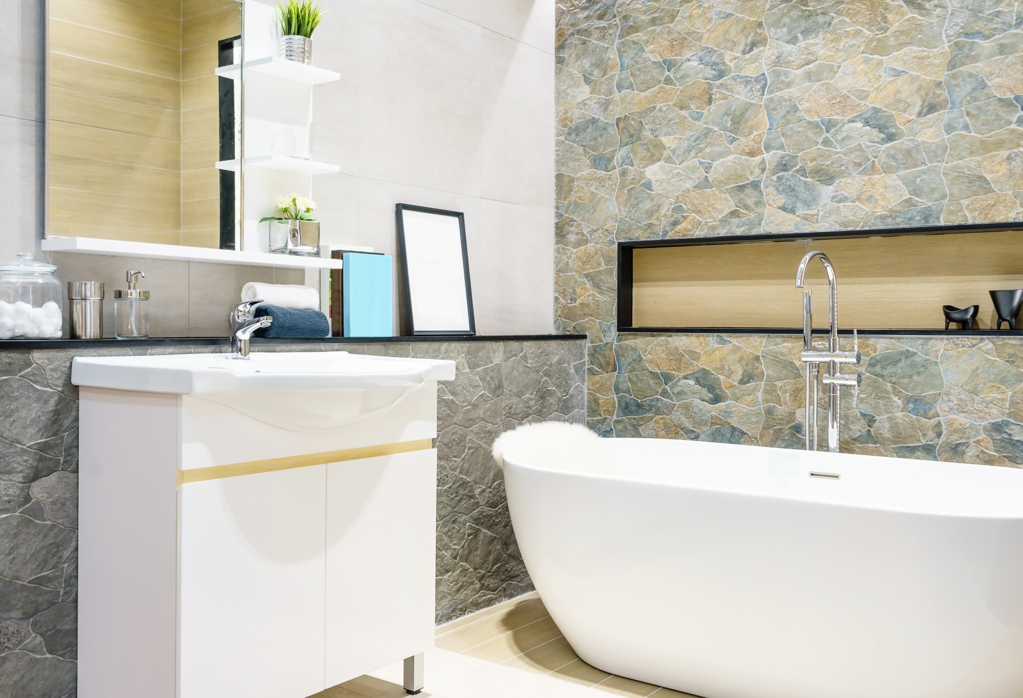 Création de salles de bains clé en main, avec une prise en charge complète des travaux.